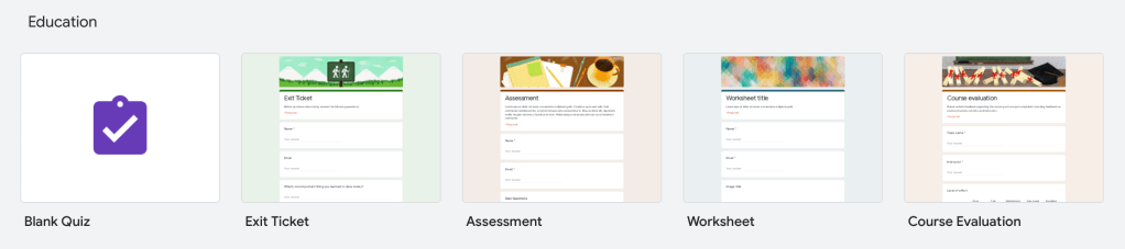 In Google Forms, create a ‘form’ from a template. Check out the education section – any of those templates will work.